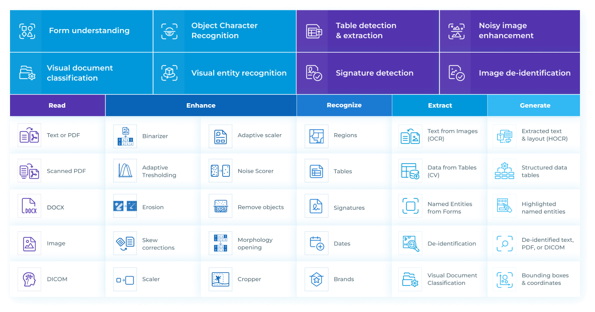 Visual document understanding library for extracting information from images, scanned documents, PDFs, DOCX, and DICOM files.